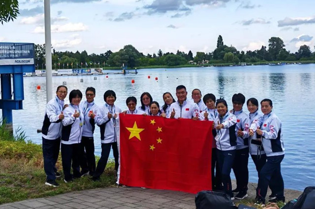 在极具挑战的2000米绕标赛中,队员们克服了前一天刚刚抵达德国、尚未调整时差的巨大困难。面对连续两天的高强度长距离角逐,她们顶住体力极限,全力拼搏,最终以10分29秒703的优异成绩力压群雄,勇夺该项目金牌,实现了在该项目上的突破。