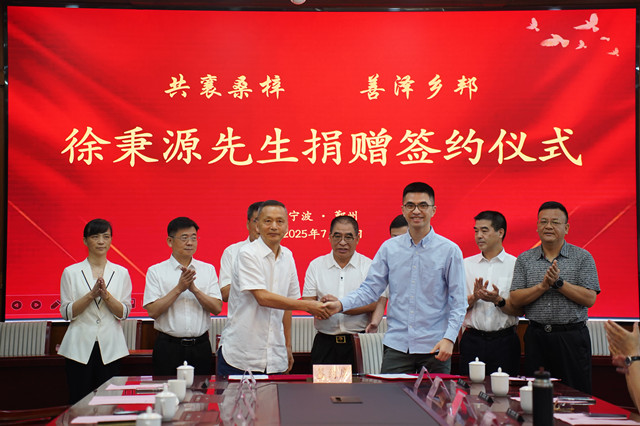 7月28日,宁波市侨商会永远名誉会长徐鸣翔之子,香港甬港联谊会常务副会长徐秉源先生向宁波市鄞州区慈善总会捐赠200万元,用于家乡教育发展。