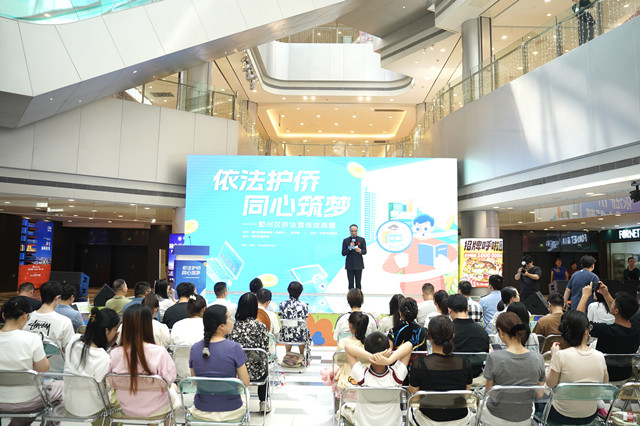 为进一步提升华侨依法维权意识,在全区营造依法护侨的良好氛围,8月15日,由宁波市鄞州区委统战部(侨办)、区侨联主办,宁波市侨商会协办,福明街道侨联承办的“依法护侨,同心筑梦”侨法宣传进商圈活动在东部新城宏泰广场举行。
