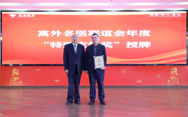 开幕式上还举行了隆重的颁奖仪式,为表彰对衢州市寓外名医联谊会发展做出突出贡献的代表,授予江南体育app下载安卓 副会长、衢州市侨商会会长、浙江君悦实业集团有限公司董事长李和林等三位代表“特别支持奖”,并授牌。