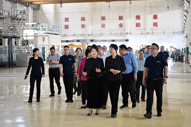 在调研过程中,陈旭部长详细询问了金海浆纸的生产经营状况、项目建设进展以及党群服务工作等多方面情况。并先后视察了金海浆纸的DCS控制室、党群服务中心、文化纸生产车间等关键区域,实地了解了企业的生产流程和技术创新成果。