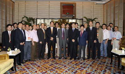 省政协副主席王永昌(左七)会见廖春荣(左六)、吕文广(右六)、王关水(左五)、朱建德(左一)等侨商代表。省侨办主任王晓峰(右七)、副主任余长年(后排右二)陪同会见。