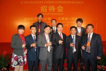 云南省省长秦光荣(右三)与我会常务副会长郭胜华(右二)、姜际春(左三),副会长周海波(右一)等合影