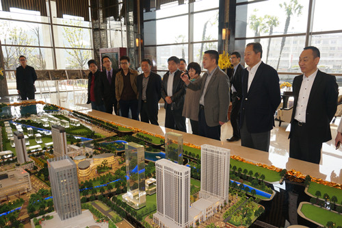 在省侨商会副会长、鑫泰投资有限公司首席执行官林文清(右一)陪同下考察温岭银泰城项目