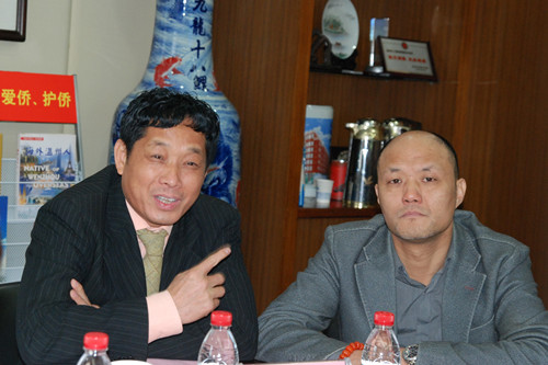 侨资企业代表发言(一),右为省侨商会副会长刘光华