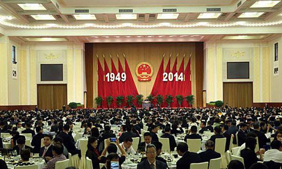 国务院9月30日晚在人民大会堂举行国庆招待会,热烈庆祝中华人民共和国成立65周年。习近平、李克强、张德江、俞正声、刘云山、王岐山、张高丽等党和国家领导人与3000余名中外人士欢聚一堂,共庆佳节。