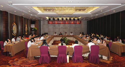 2015年,省侨商会坚持以服务为宗旨,切实做好侨商组织宣传信息工作,展示浙江侨商风采和形象,在推进侨商事业和侨商组织发展壮大中发挥了重要作用。一是为褒扬和宣传会员企业创业创新先进典型,5月上旬,组织“侨商回归、创业创新”系列走访活动,新华社浙江分社、中新社浙江分社、浙江日报、中国日报、中国环境报等 12家新闻媒体单位共同采访宁波激智科技股份有限公司、宁波海曙同泰嘉陵有限公司等侨企,取得积极成果。二是对《浙江侨商》会刊封面及有关栏目进行了改版和创新,内容更加丰富,受到会员企业的欢迎和海内外侨界人士的好评。三是办好网站等信息平台。浙江侨商网站全年编发文字稿980多篇和图片460多幅,向国务院侨办、中国侨联、中国侨商会、中国侨商联合会等网站和《中国侨商》杂志发稿280多篇,采用110多篇。网站点击率继续位居全国省级侨商组织网站前列;编发简报12期;编发手机短信11000多条(次)。还创办了会长团、监事会领导和各市县侨商会会长微信群。四是举办了全省侨商组织信息宣传培训班,各市、县侨商会和部分会员单位50余名信息宣传工作人员参加。同时表彰了一批优秀通讯员,健全了宣传信息工作考核办法和激励机制。(王丽荣/文 陈谋荃 章幼红/图)