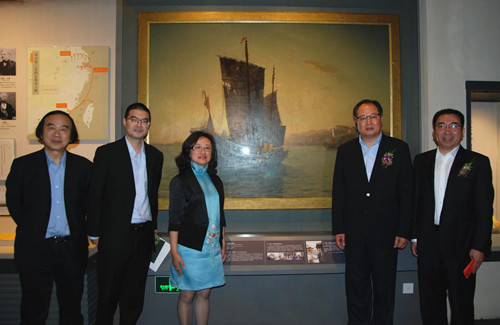 参观珍藏在博物馆的《定海港的中国船》油画