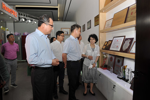 廖春荣会长一行在陈励君董事长的陪同下,参观了华日冰箱的产品陈列室和10万平方米的生产制造车间、国家级中心试验室,并观看了大型多工位正压内胆成型机的现场生产场景,了解了U壳一次成型装备、旋转式门体发泡专用设备等。在听取了陈励君董事长和公司其他负责人关于华日转型发展情况的介绍后,廖春荣会长表示,看到如此大的厂房、先进的设备和技术,不仅让我们开阔了眼界,也为我们国家的制造业,为我们侨资企业增了光。陈董事长率领华日公司在富阳东洲创建了目前中国家电行业中最具先进技术的综合家电制冷基地,不仅助推了华日系列制冷产品的生产制造和企业的转型升级再发展,而且也为全省侨资企业科技创新、转型升级树立了榜样。