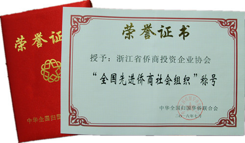 被授予“全国先进侨商社会组织”荣誉称号,受到中国侨联表彰。中共中央委员、中国侨联主席林军,国家民政部副部长顾朝曦等到会为获奖侨商社会组织颁奖。