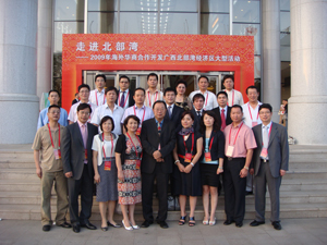 以“共话合作,共谋发展”为主题的“走进北部湾——2009年海外华商合作开发广西北部湾经济区大型活动” 由中国侨联和广西壮族自治区人民政府共同主办,中国侨联主席林军、广西壮族自治区党委书记郭声琨、自治区主席马飚等领导出席活动开幕式。来自全球30多个国家和地区的160多位华商侨领和科技精英应邀参加活动。应邀组团前往参加活动的我省考察团成员来自8个国家和地区,均是浙籍侨商的优秀代表,省侨商会副会长陈乃科等随团参加活动。