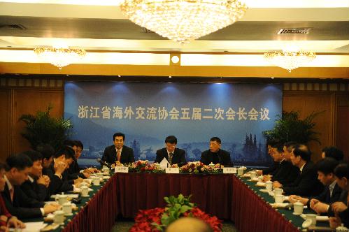 2010年1月20日,浙江省海外交流协会五届二次会长会议在杭州召开。会议总结了省海协自去年四月换届以来九个月所做的主要工作,对今年海协工作进行了部署。副省长、省海协会会长、省侨商会名誉会长龚正出席会议并作了重要讲话;省侨办主任、省海协执行常务副会长、省侨商会顾问王晓峰在会上作工作报告。我会出席会议的顾问和领导有:省政府副秘书长、省侨商会顾问夏海伟,省侨办副主任、省海协副会长、省侨商会副会长余长年,省海协常务副长、省侨商会常务副会长郭胜华、林东、姜际春、陈侠,省海协常务副会长、省侨商会副会长陈乃科、刘光华、陈志荣,省海协副会长、省侨商会副会长吕文广、余文龙、黄镇鑫,省海协副会长、省侨商会副监事长方杰等。