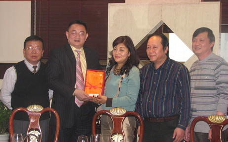 两地侨商组织负责人互赠礼品