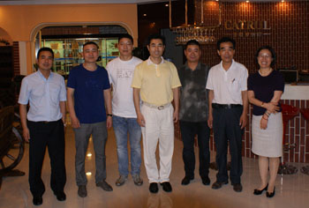 图为王晓峰(左四)、冯美兰(右一)与义乌市侨商会负责人合影