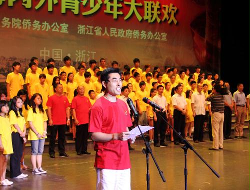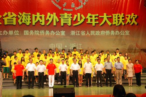 中国功夫、太极街舞、时装秀、唱脸谱……7月28日下午,省人民大会堂主会场里热闹非凡,由国务院侨办和浙江省人民政府侨务办公室主办的2011年“中国寻根之旅·快乐浙江行”夏令营全省华裔青少年大联欢活动在这里举行。来自全世界35个国家和地区的1000名海外华裔青少年欢聚一堂,展示在夏令营里学习的中华才艺,分享“寻根之旅”活动的收获和喜悦。