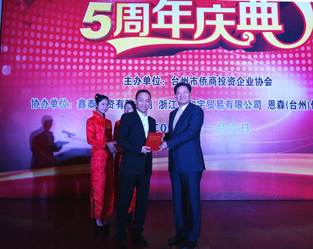 庆典上,台州市政府对五年来捐助社会公益慈善事业的侨商会会员进行了表彰。据不完全统计,捐赠共达6000多万元人民币,主要资助台州的慈善、教育、新农村建设等事业。(朱英嘉/文章幼红 王丽荣/图)