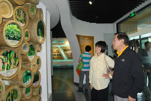 李昌钰博士(右)与夫人宋妙娟女士(左)参观竹博园