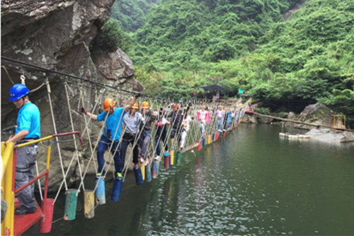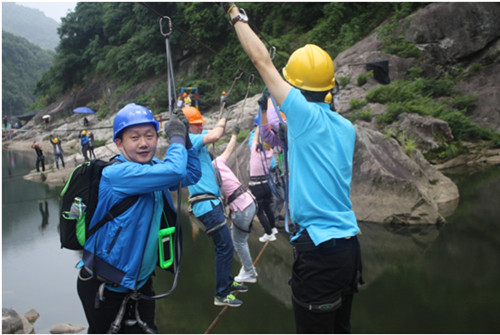 在九鲤溪素质拓展培训基地,员工们参加了“携手并进”、“抽板过河”、“飞檐走壁”、“荡绳过河”、“凌空漫步”、“高空溜索”、“浮桩桥”等拓展项目。拓展中,充满了尖叫声、加油声以及欢声笑语,它们一遍遍的在谷底回荡,奏出一种美妙的旋律。大家从一开始对拓展项目的的期待,到中间的挫折,到勇敢的骨气勇气,到后面的高空俯瞰,无不为员工们讲述着人生的哲理,只有在风雨中成长起来,才能领略更加美好的生活。