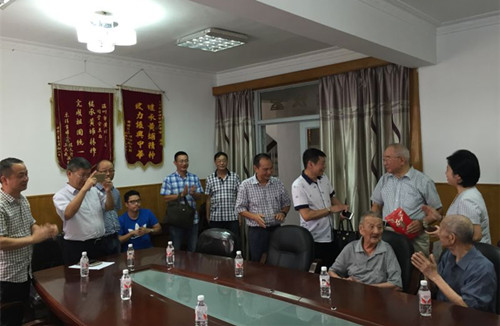 为纪念中国人民抗日战争暨世界反法西斯战争胜利70周年,9月1日下午,温州市委常委、市政协副主席、市委统战部部长施艾珠和温州市侨联党组书记许益伟,温州市华商会共同会长、繁城物流有限公司董事长、原温州黄埔军校同学会会长周廷光之子周小珑等一行,来到温州市黄埔军校同学会开展慰问活动。