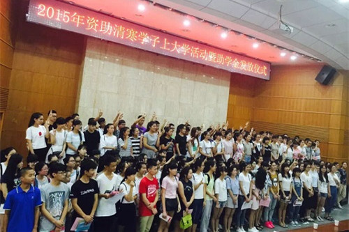8月26日上午,“2015资助清寒学子上大学”助学金发放仪式在瑞安市市委党校多功能厅举行,913名贫困学子获得助学金455万元。西班牙瑞安华侨华人经贸总会名誉会长朱良仕受余式斌会长委托,在仪式上为贫困学生发放助学金并致辞。