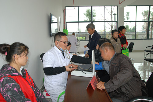 医务人员为老人测量血压