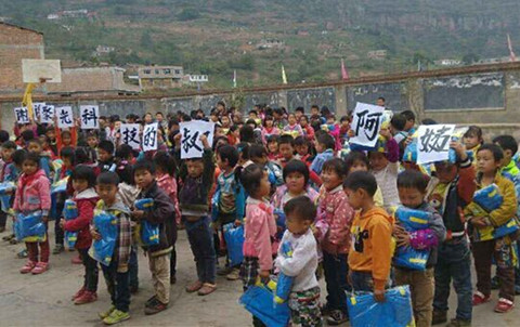 由于路途遥远,山路崎岖,校服只能送到县城。勒堵小学校长何世斌在接到物流电话后兴奋得睡不着觉,他心里一直默念着“孩子们终于有新校服可以穿了”,第二天天没亮他就赶往县城把165件衣服运回了咪咡村,发放到每一个学生手中。