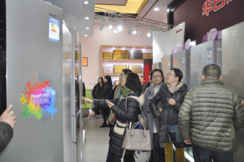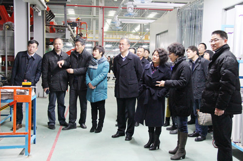 吴主席一行在陈董事长的陪同下,第一时间走入制造车间。他们在8万平米的制造车间用1小时看完了冰箱生产制造的全过程,华日先进的装备和专业的管理给大家留下深刻的印象。陈励君董事长介绍了华日这次华丽转身中的几个精彩动作:第一、机器换人,提升效能,劳动生产率提高38% 。第二、转型升级和技术进步。华日新基地装备线采用当今最新的技术,如U壳一次成型装备,旋转式门体发泡专用设备,D型管成型和同步技术。第三、国家级实验室的建设。 第四、ERP生产计划管理体系的融入和使用。第五、智能控制,智能识别和柔性化生产。在她的介绍中,我们可以听到很多的新名词、新技术术语和新的管理模式。陈董对企业的热爱和了解可见一斑。
