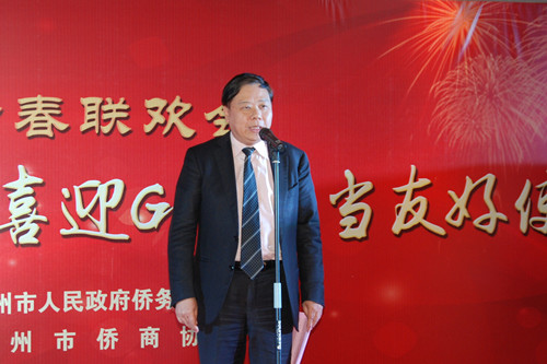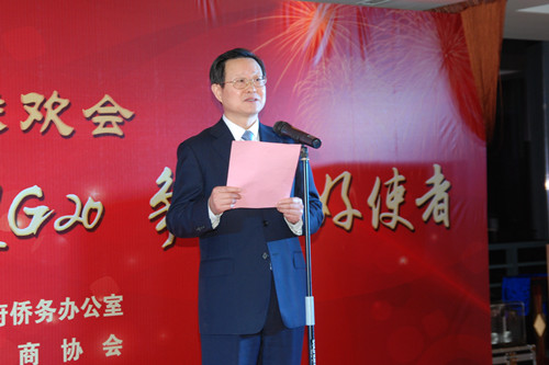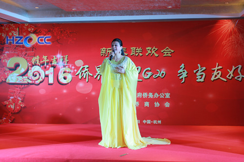 1月31日,杭州市侨办、市侨商会以“侨界喜迎G20峰会、争当友好使者”为主题,举办2016新春联欢会,倡议全市广大海外侨胞、港澳同胞、归侨侨眷架起杭州与世界各地的桥梁,做好杭州的宣传者、文化的传播者、热心的联络员和热情的东道主。省委常委、杭州市委书记赵一德发来贺信,副市长谢双成、市侨办主任林国蛟、市侨商会会长姜际春出席并致辞,市有关部门领导、市侨商会全体理事、海外侨商代表等200余人参加。