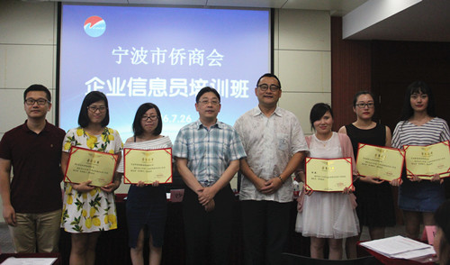 7月26日,宁波市侨商会首届企业信息员培训班在商会会所开班,30家侨资企业信息联络员参加了此次培训班,市侨办经科处处长兼侨商会秘书长俞雷,副监事长、行政宣传委员会委员沙力出席开班仪式并致辞。