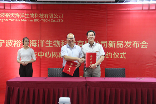 最近,宁波市侨商会副会长包荣升任董事长的宁波裕天海洋生物科技有限公司迎来了首次新品发布会暨研发中心揭幕及校企合作签约仪式,与宁波大学,浙江万里学院,江南大学签订协议,开启校企合作产学研项目。墨西哥驻上海总领事馆总领事罗德雷、中国调味品总干事卫祥云、宁波市委原副书记郭正伟、市侨联主席李承戌、市侨办副主任陈进军以及各大高校领导应邀出席。