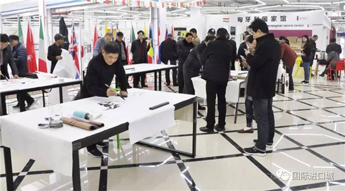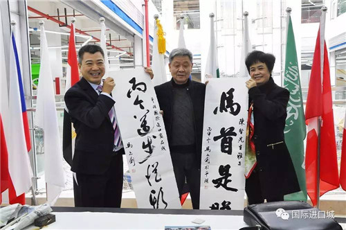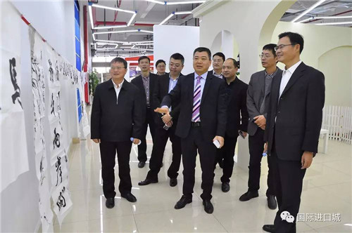 温州市政协代表团一行首先听取了进口城工作人员对进口城的相关介绍,在进口城工作人员的陪同下,先后参观了平湖国际进口商品城专业市场国家馆、德国小镇男女品牌服饰馆、进口工艺品馆及进口皮鞋馆。对进口城有了初步了解后,政协代表团一行来到了进口城专业市场二楼开始了即兴书画创作。