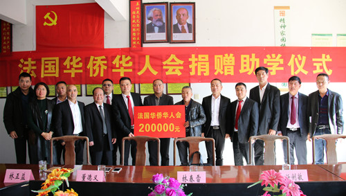 在捐资助学仪式上,万排小学校长林永辉介绍了学校的历史和因受台风莫兰蒂影响重建的情况,对法国华侨华人会的无私捐助表示深深谢意。