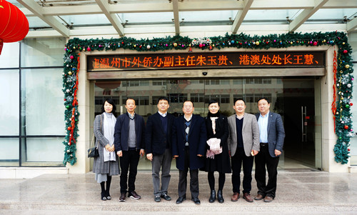 1月16日,温州市外侨办副主任朱玉贵、港澳处处长王慧、经济联络处郭显选,乐清市外侨办侨务科科长施夕夕、乐清市侨商会秘书长蒋向阳一行到华嘉电器有限公司开展新春慰问重点侨领、侨商。