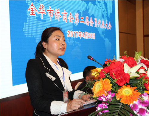 会长吴超英在就职演说中首先感谢大家对她的信任、支持和鼓励。她表示新一届侨商会将秉承上届办会理念,创优争先,进一步明确发展目标和方向,抱团发展,为金华社会进步和经济发展发挥作用;同时,希望在各级政府部门和各位领导的关心下,努力做好各项工作,切实维护会员的合法权益,更好地为侨胞、侨企办实事、办好事,在一带一路建设、浙商回归的新形势下抓住机遇,鼓励侨胞把人才、技术带回家乡,投资创业,为金华经济社会蓬勃发展的美好明天做出应有贡献。