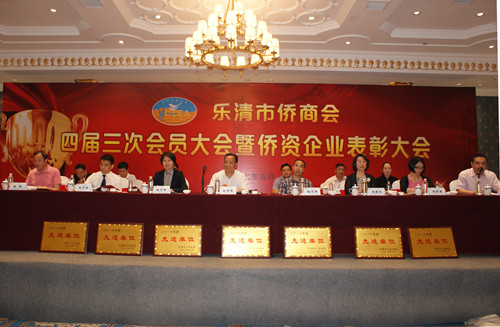 5月25日,乐清市侨商会召开四届三次会员大会。乐清市委常委、统战部长赵明皓,市人大常委会副主任程天青,市政协副主席林月和,市外侨办副主任周越女,市民政局副局长周秋莲,市侨联副主席朱有发等领导及有关部门和会员企业负责人共180人参加会议。