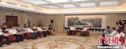 浙江省委常委、省委统战部部长冯志礼会见廖春荣会长一行。陈谋荃摄