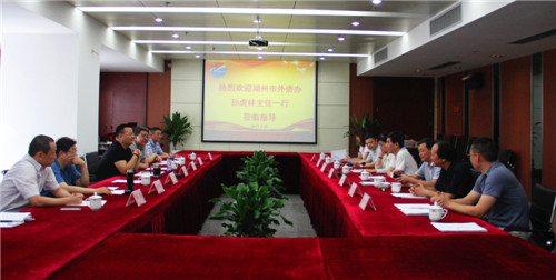 最近,湖州市外侨办主任孙虎林率湖州市侨商会考察团一行7人到访宁波市侨商会,宁波市侨办副主任赵骏、经科处处长俞雷,宁波市侨商会会长徐旭昶热情接待。