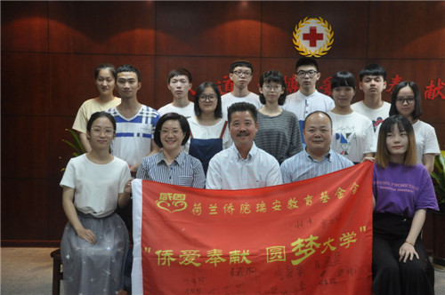 此外,受助大学生为了表达对荷兰瑞安教育基金会的感谢,他们不仅在“侨爱奉献、圆梦助学”的红色旗帜上签上了自己的名字,还录制了感谢视频,表达了他们对基金会所有叔叔阿姨的由衷感谢。