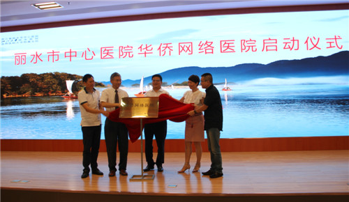 9月26日,丽水市中心医院创建的移动互联网医院——华侨网络医院正式启动。丽水市侨商会会长团成员、首届世界丽水人大会部分海外侨胞约80人应邀参加启动仪式。丽水市侨商会会长陈乃科受邀致辞,并与市中心医院院长韦铁民、市外侨办副主任金晓伟、市卫计委副主任王峰、市侨商会监事长何晓娟一起为“华侨网络医院”揭牌。