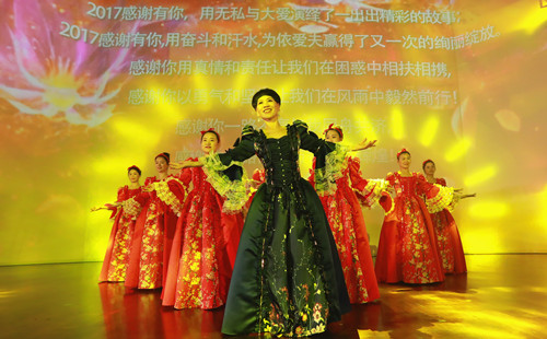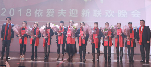 晚会现场,依爱夫公司对2017年度十大优秀员工进行了表彰。优秀员工们在感恩中接过了公司沉甸甸的荣誉证书,一年的不辞劳苦和辛勤工作,换得了今日的表彰和荣耀,未来,他们一定会更加努力,步步攀登高峰。