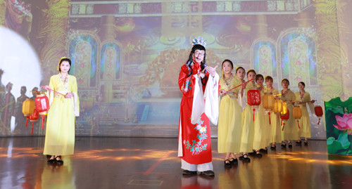 晚会上让人目不暇接的表演,舞蹈、小品、舞台剧等节目精彩纷呈,中间还穿插了抽奖环节,不断掀起晚会的高潮。中国纺织建设规划院院长、浙江省服装行业协会会长冯德虎演唱的《绒花》是晚会的一大亮点。(王晓晓)