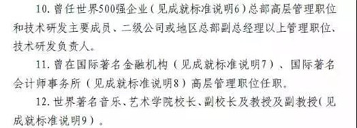 A类分为六大类,超过30多个小项。比如说,其中一类为:“符合国际公认的专业成就认定标准的”,包括了18个小项: