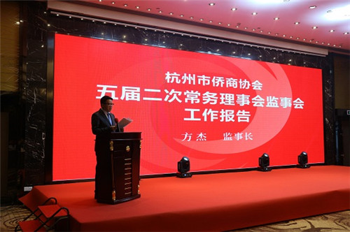 陈励君会长在常务理事会工作报告中指出,2017年是杭州市侨商会第五届理事会的开局之年,市侨商会在党的十九大精神的指引下,在市委、市政府和市外侨办的关心指导下,在全体理事会、监事会成员的共同努力下,秉承“脚踏实地、服务会员,开拓创新、服务发展”的理念,通过一年的工作,取得了一定的成绩,得到了常务理事会、监事会的充分肯定。2018年市侨商会将全面贯彻党的十九大精神,抓住我国改革开放40周年的机遇,继续围绕“服务会员、服务发展”的宗旨,在全体会员的共同奋斗努力下,营造良好的侨商侨资企业投资经营环境,为杭州打造世界名城、经济强市贡献力量。