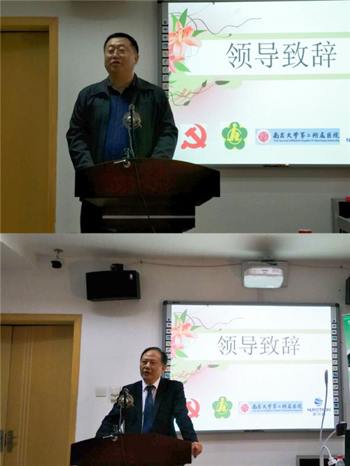 横峰县县委常委、副县长王瑞新、浙江诺尔康神经电子科技股份有限公司常务副总银力发表致辞。