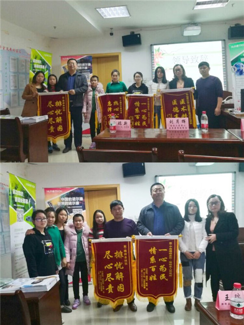 6名听障患者为了表达对中国扶贫基金会、 南昌大学第二附属医院耳鼻咽喉科头颈外科、横峰县委、县政府、横峰县残联的感激之情,联名送上"热心公益,惠泽万家"、"医术精湛,医德高尚"、"一心为民,情系百姓"、"排忧解困,尽心尽责"的锦旗。