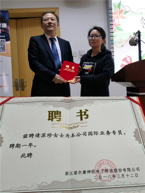 高学历,英语八级的苏珍因后天疾病失去听力,在这项公益项目中,不仅重回有声世界,还获得了浙江诺尔康神经电子科技股份有限公司的青睐,被聘为国际业务专员,重拾外事工作。