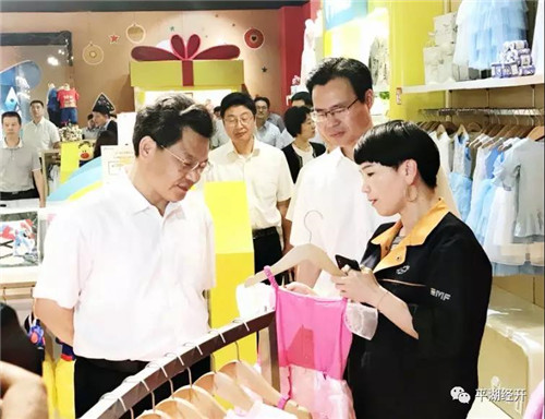 任振鹤一行实地走访了区内浙江依爱夫游戏装文化产业有限公司,现场参观了伊佳林开心梦工场、游戏装文化馆和道德模范工作室等场所,对企业生产经营情况以及党建、廉政等工作开展情况进行了详细了解。