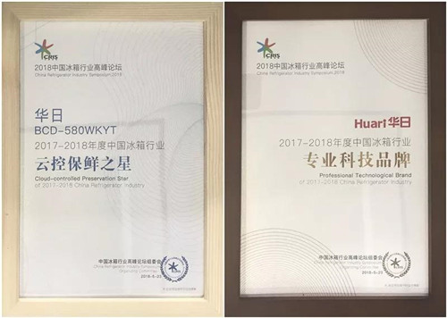 5月23日,由中国家用电器协会与国家信息中心信息化和产业发展部指导、中国家电网主办的2018中国冰箱行业高峰论坛在北京召开。会上,华日冰箱凭借在冰箱制造上专业实力及在智能控制、云控保鲜等方面的创新升级,荣获了“2017-2018年度中国冰箱行业专业科技品牌”、“2017-2018年度中国冰箱行业云控保鲜之星”两大奖项。