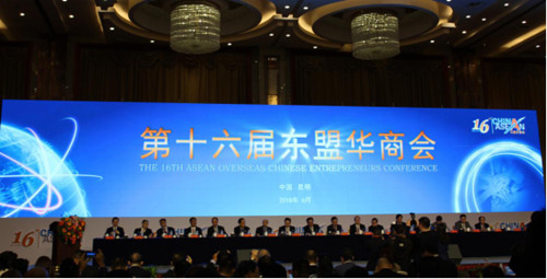 以“新时代、新机遇、新征程、新发展”为主题的第十六届东盟华商会于近日在昆明举行,全国政协常委、中华全国归国华侨联合会副主席李卓彬,云南省委常委、常务副省长宗国英出席开幕式并致辞。