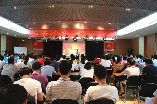 7月4日,聚光科技股份有限公司在滨安路园区五楼多功能厅举行以“红色飞扬,高效前行”为主题的庆“七一”活动。本次活动由聚光党委主办,职能联合党支部承办,公司近200名党员参加。